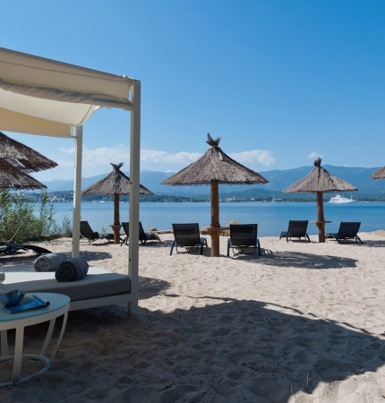 Profitez des moments de relaxation pour bronzer sous les doux rayons du soleil corse, pour lire votre revue ou roman préféré, siroter un rafraîchissement ou bien contempler la beauté du panorama de la Mer Méditerranée, l’Îlot Ziglione et la cité de sel, à l’ombre sur un lit de plage à baldaquin.